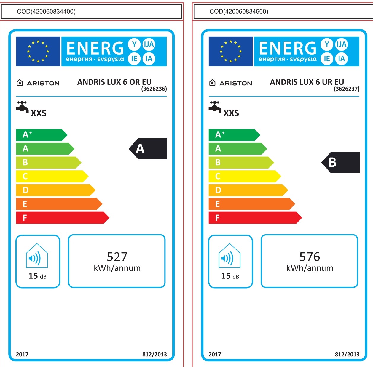 | Zakres klas efektywności energetycznej | A++ – G |