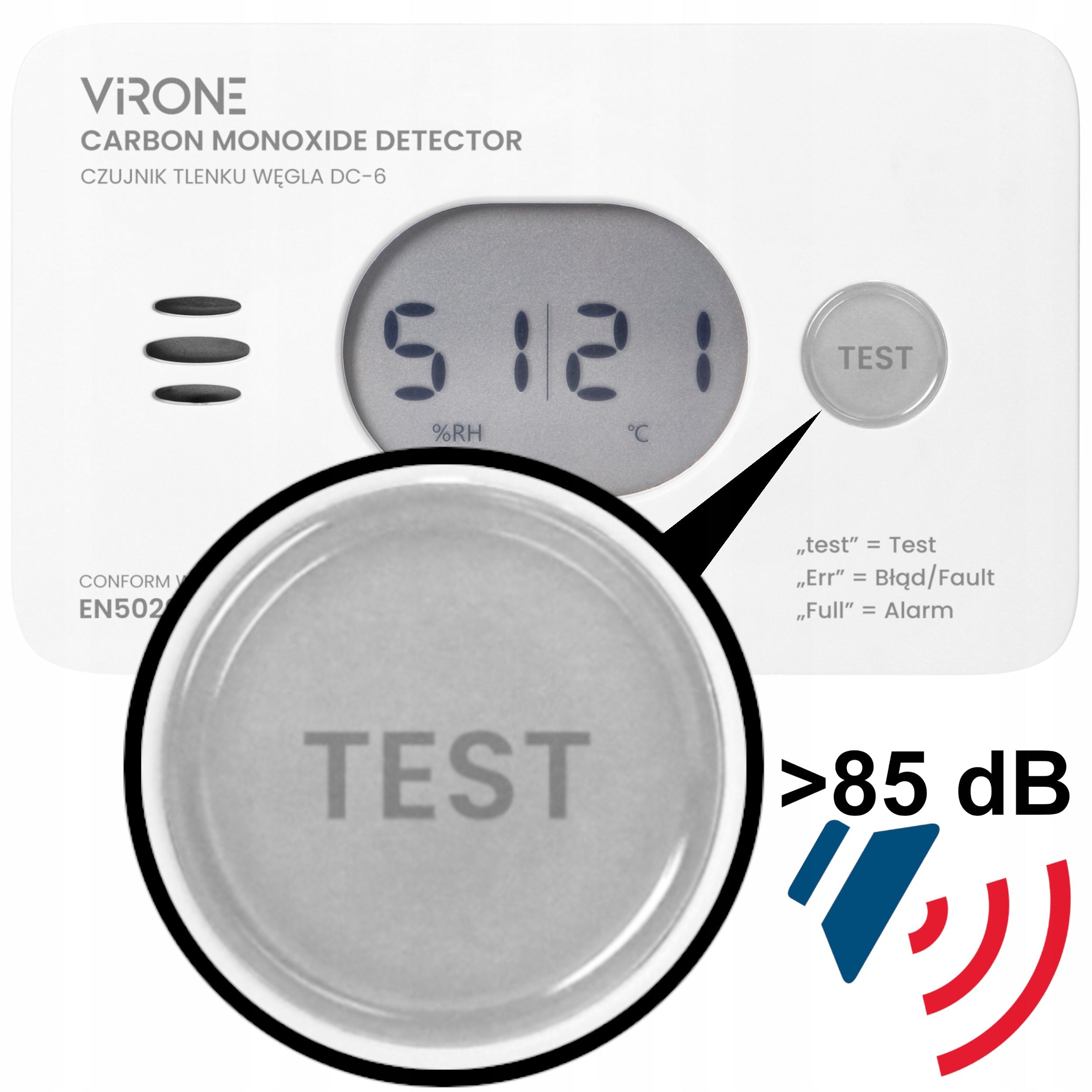 Czujnik tlenku węgla (czadu) Virone ORNO DC-6|Bateryjny|10 lat pracy|LCD
