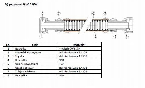 Konstrukcja przewodu umożliwia jego stosowanie z różnymi rodzajami gazów – zarówno ziemnymi, jak i płynnymi. Dzięki temu przewód jest uniwersalny i wszechstronny w użyciu.