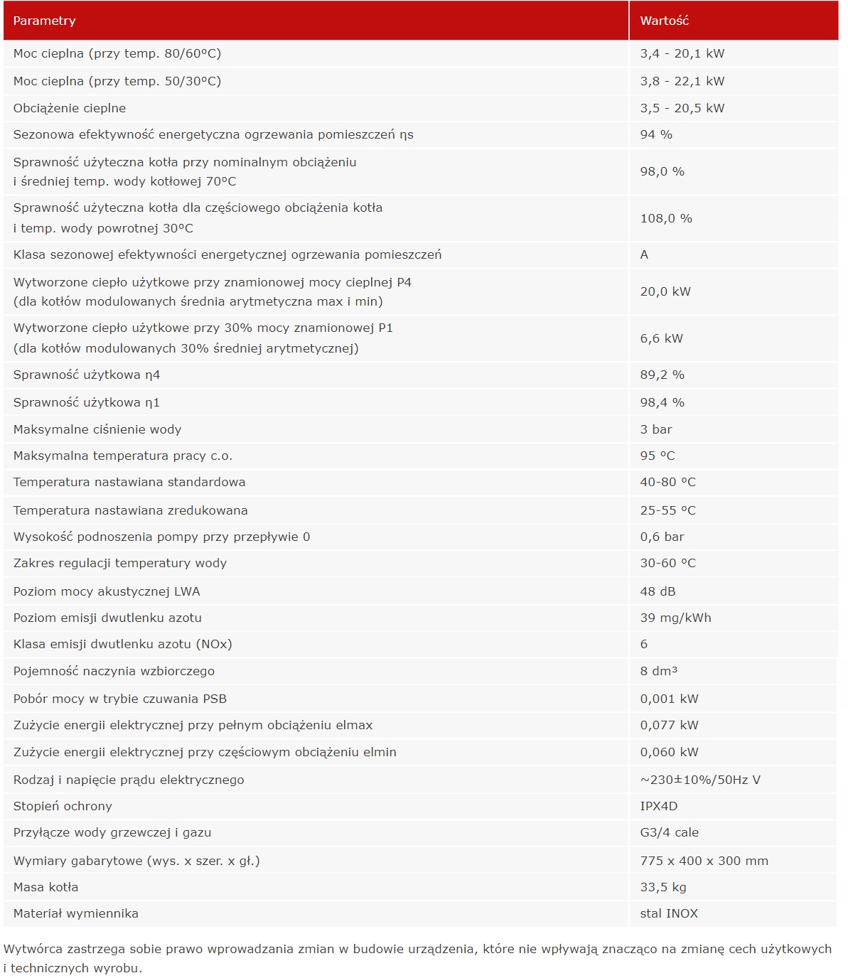 - Moc cieplna (80/60°C): 3,4–20,1 kW