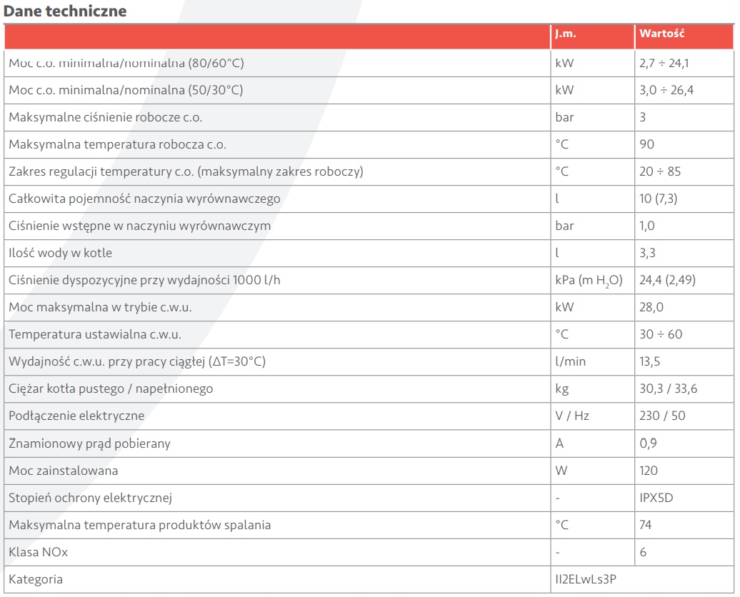 • Moc c.o./c.w.u.: ok. 28 kW (szczegóły w dokumentacji technicznej)