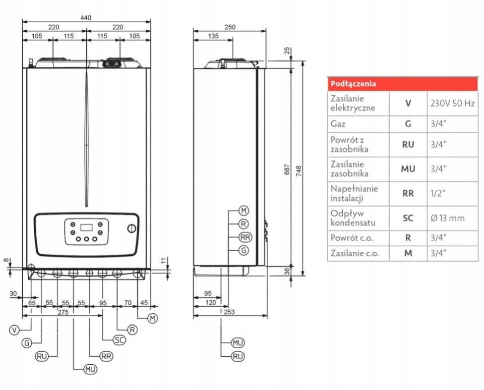 • Typ: Kocioł kondensacyjny, wiszący, jednofunkcyjny