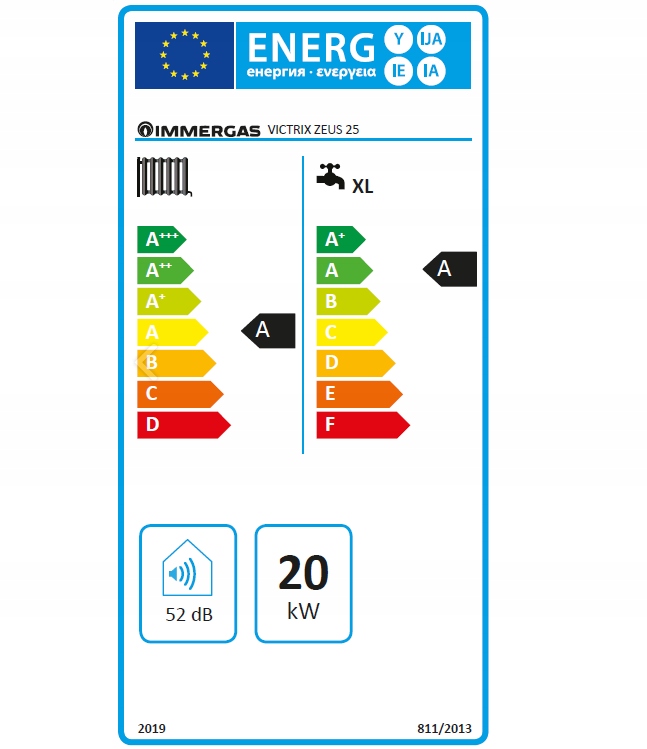 | Zakres klas efektywności energetycznej | A++ – G |