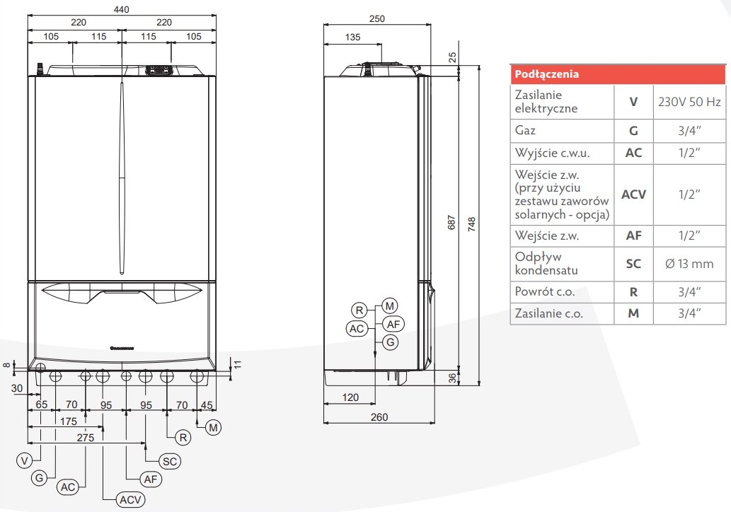 - Funkcje: Dwufunkcyjny (c.o. + c.w.u.)