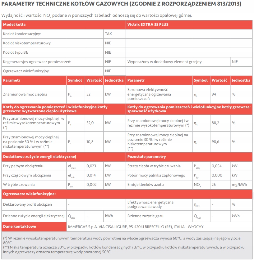 Model Victrix EXTRA PLUS 35 to solidny i niezawodny kocioł kondensacyjny jednofunkcyjny, zaprojektowany z myślą o wymagających instalacjach centralnego ogrzewania. Dzięki wysokiej mocy 35 kW, jest odpowiedni do większych budynków mieszkalnych i obiektów komercyjnych.