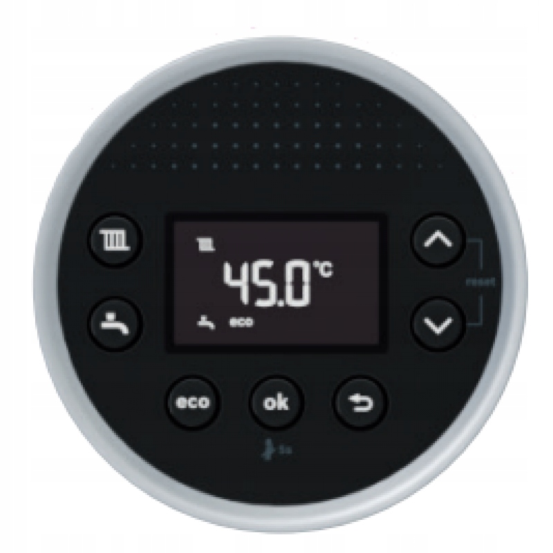 Urządzenie jest wyposażone w czytelny wyświetlacz LCD z 6 podstawowymi funkcjami, co umożliwia intuicyjną i prostą obsługę nawet bez instrukcji. Palnik kondensacyjny automatycznie dostosowuje swoją moc do aktualnego zapotrzebowania, co ogranicza zużycie energii i zwiększa efektywność.