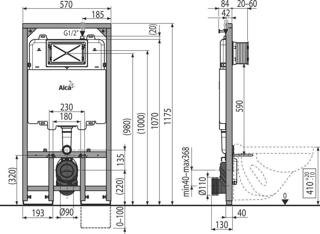Stelaż podtynkowy AlcaDrain AM1101/1200 to solidna, samonośna konstrukcja, która umożliwia stabilny montaż WC wiszącego w zabudowie lekkiej. Minimalna głębokość 84 mm pozwala na instalację w ograniczonych przestrzeniach, bez rezygnacji z funkcjonalności.